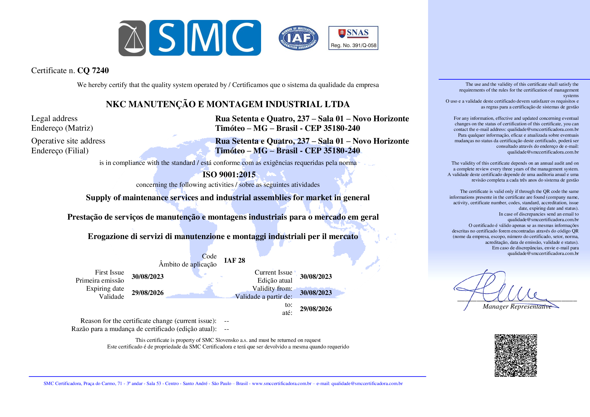 Dep. Técnico: Priscila Matricardi – qualidade@smccertificadora.com.br